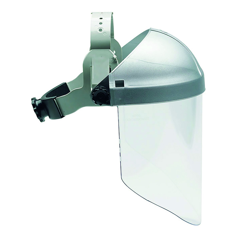 - Headgear with precision ratchet adjustment and adjustable crown band for a comfortable fit. Floating suspension reduces high impact shock. Crown protector offers excellent impact resistance over a wide range of temperatures. EN166