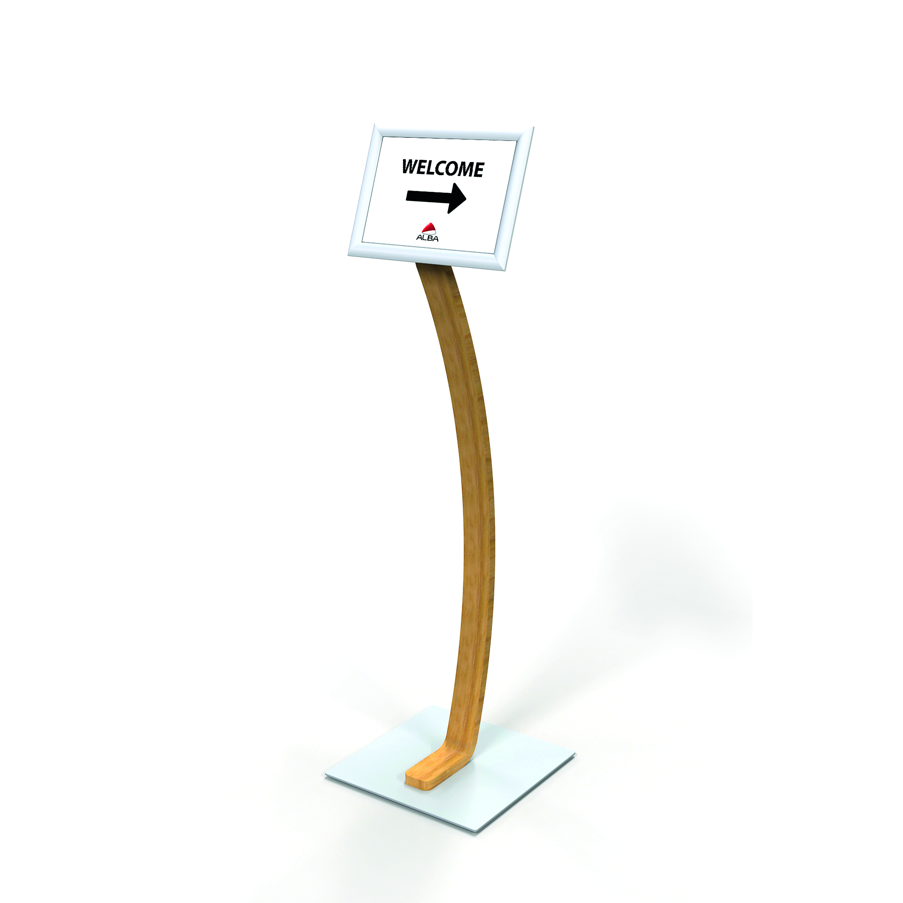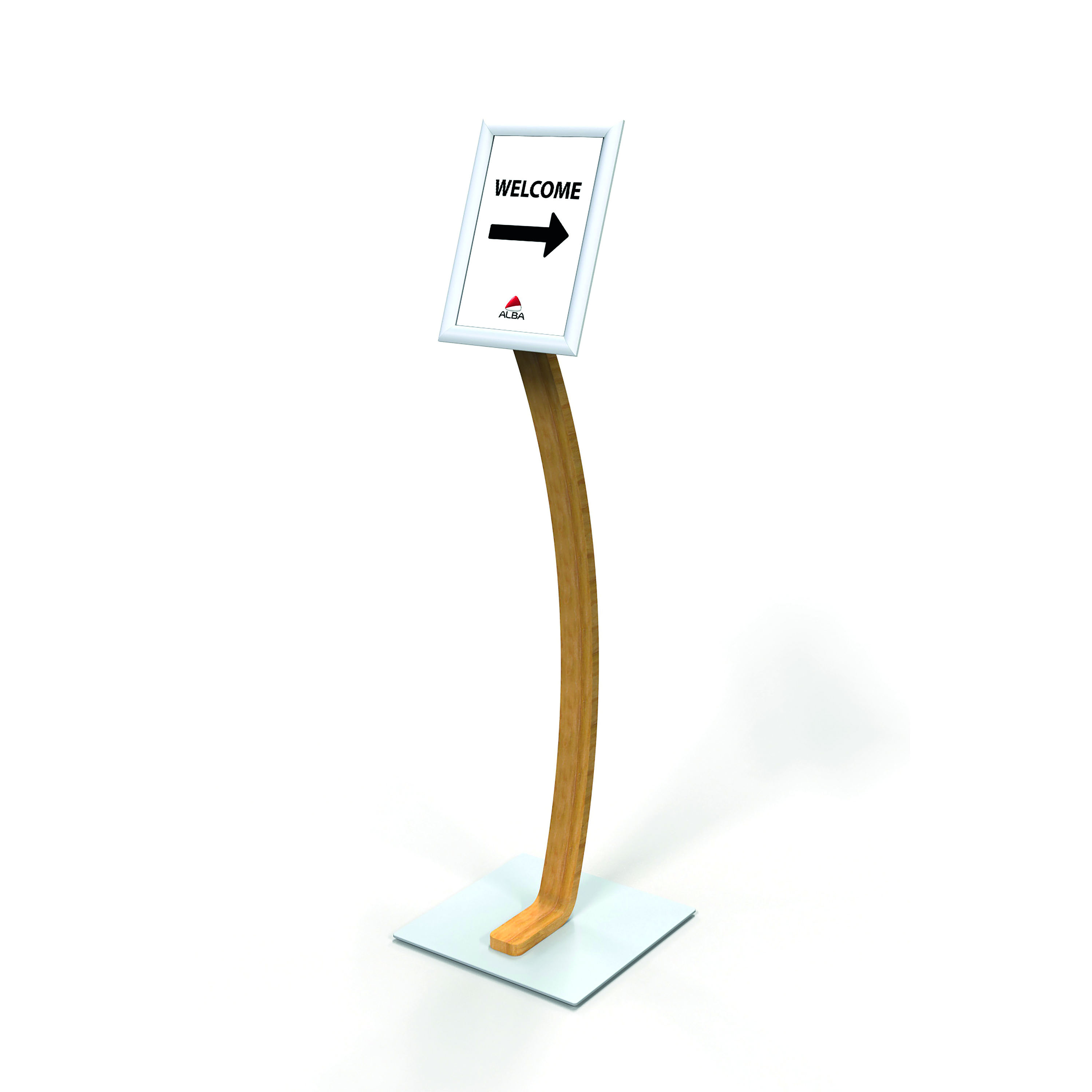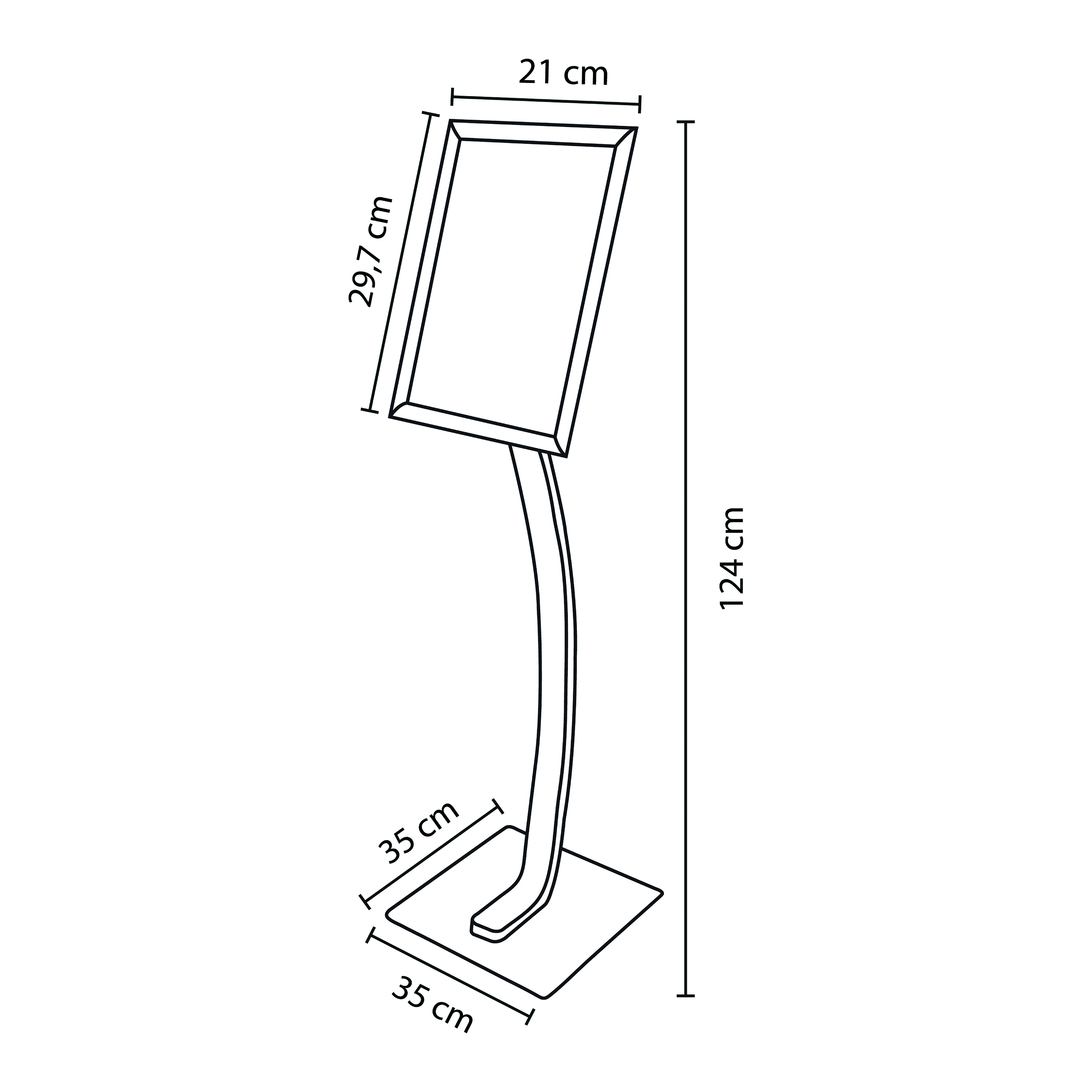 Alba Wall A4 Snap Frame is a display stand with a unique design style to showcase your documents. Aluminium frame with clip-on edge for easy document changing. The frame can be orientated in portrait or landscape format. (A4 format). Metallic white steel base for perfect stability, with anti-scratch epoxy finish. Ideal for reception areas, waiting rooms, conferences, trade fairs, restaurants, museums, etc.