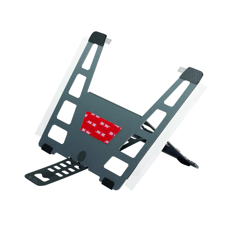 The Bakker Elkhuizen integrated laptop stand is suitable for a wide range of laptop models from 13 to 15.6 inches. The high-quality aluminium sandwich material makes the stand universal highly resistant to dents and very stable. Simply set the optimal height between 95 and 160 mm via the flexible strap with magnetic fastener on the front.