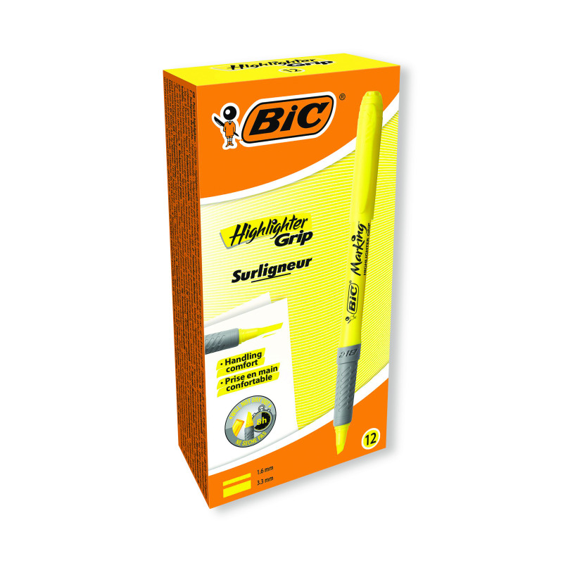 These Bic Brite Liner Highlighters contain vibrant, water based fluorescent ink with a high resistance to light and fading. The chisel tip writes a 1.6 - 3.4mm line width, which is perfect for both bold highlighting and fine underlining. Great for use at work, home or school, the slim barrel is designed for comfort in use. This pack contains 12 yellow highlighters.