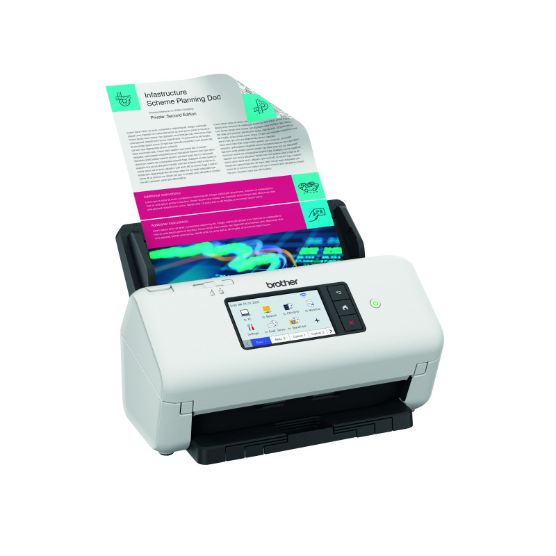 With an in-built ultrasonic multi-feed sensor to eliminate misfeeds, the ADS-4700W also has a large 80 sheet ADF capacity and rapidly scans up to 40ppm.