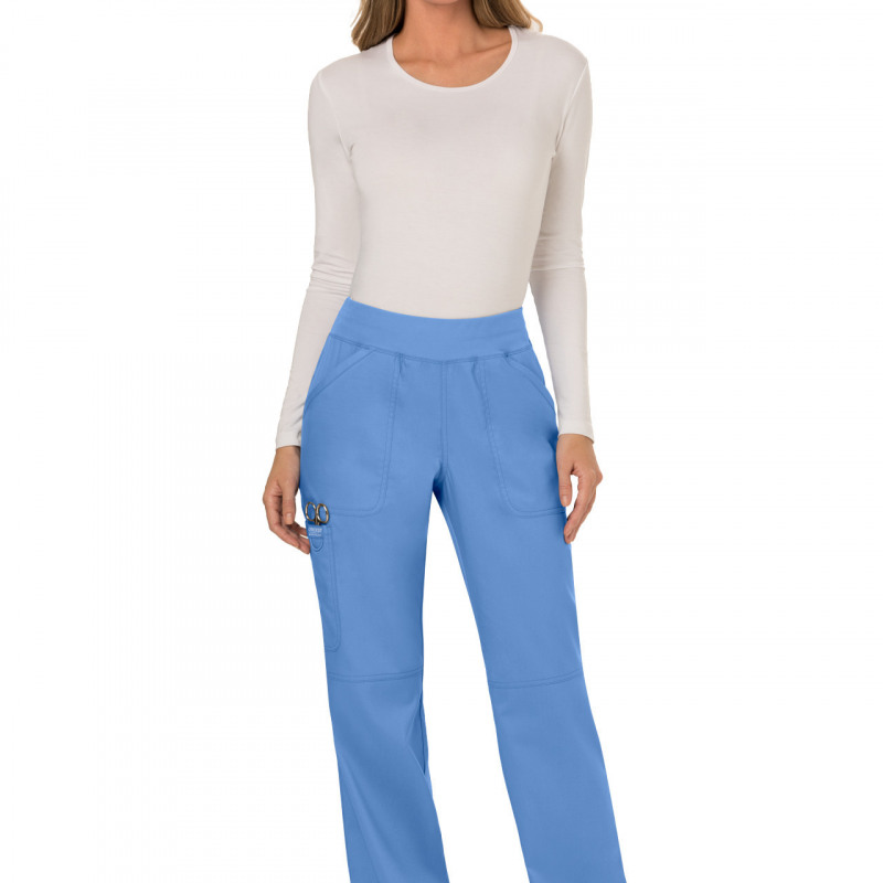 The Cherokee Revolution WW110 Women's Mid-Rise Pull-on Cargo Trouser From the Cherokee Revolution range. The cargo trousers, a classic trouser style with an elasticated waistband for added comfort.