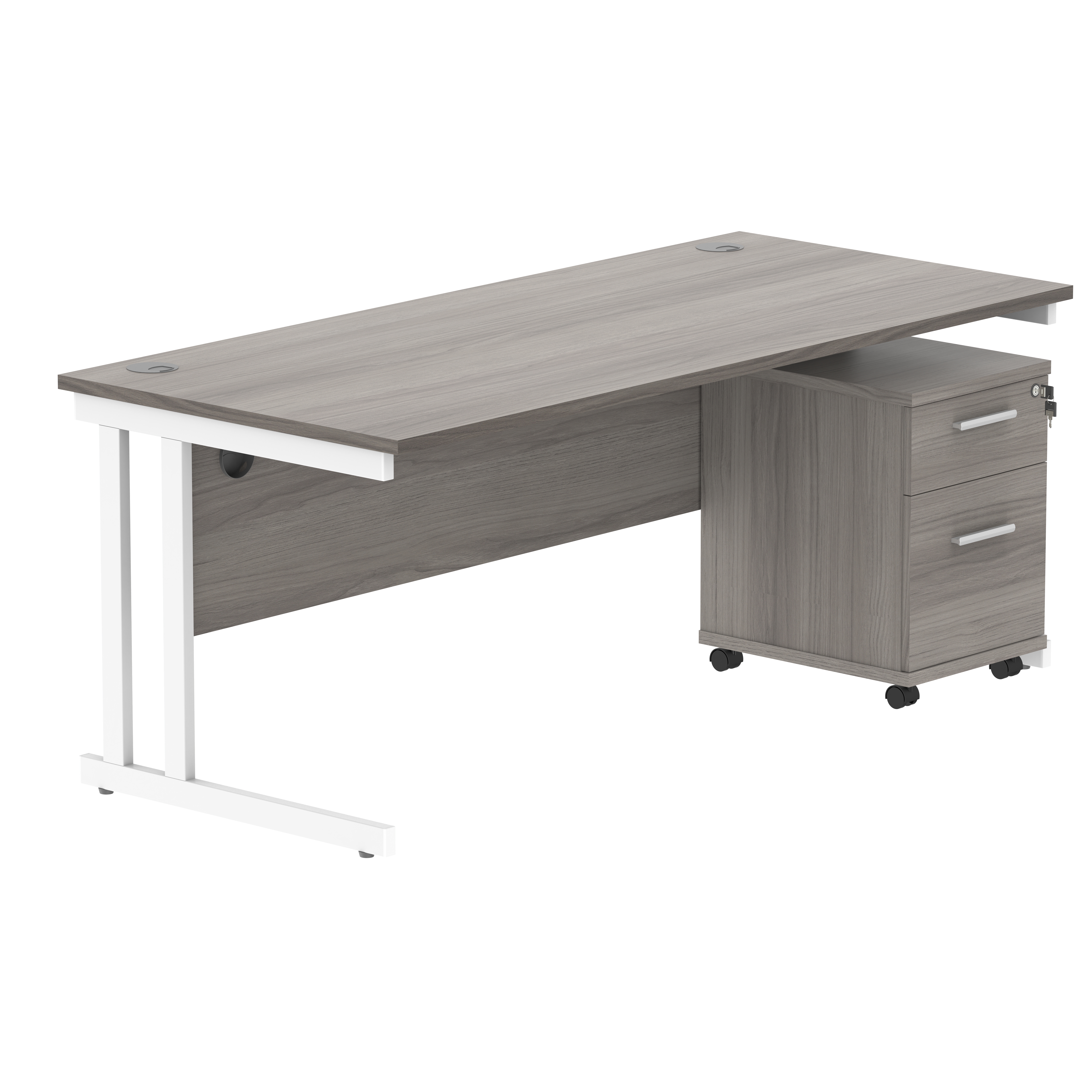 Double Upright Rectangular Desk + 2 Drawer Mobile Under Desk Pedestal (FSC) 1800X800 Alaskan Grey Oak/White