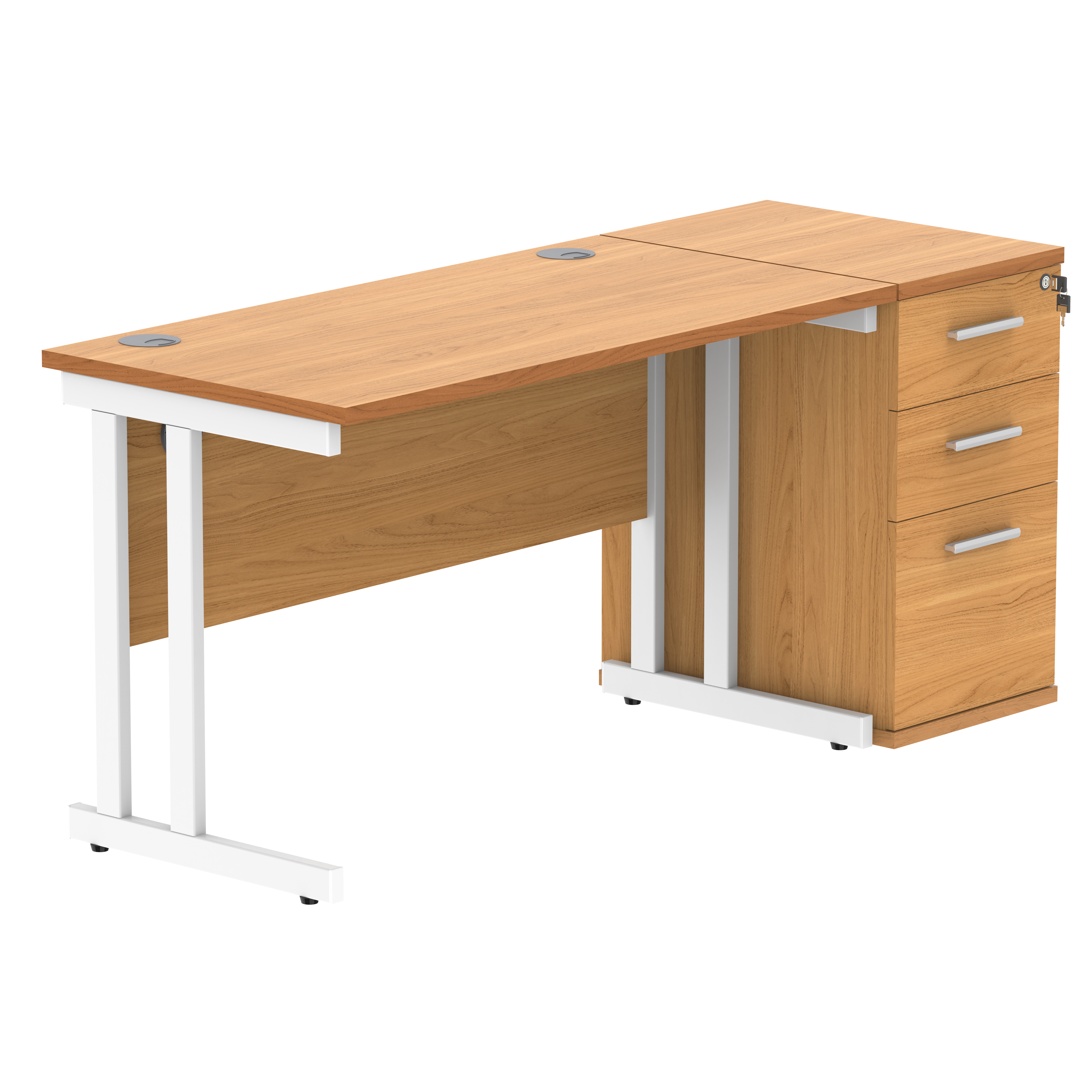 Double Upright Rectangular Desk + Desk High Pedestal (FSC) 1200X600 Norwegian Beech/White