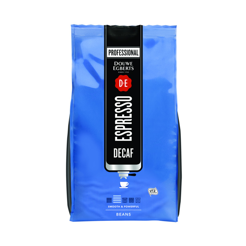 Douwe Egberts Dark Roast Decaffeinated Espresso consists of mainly Arabica and a minor part of Robusta coffee beans, from which the naturally present caffeine has been carefully removed. It is perfect for an espresso and makes a delicious, full flavoured Cappuccino or Caffe Latte. It is also suitable for making a Caffe Lungo. Since 1753 Douwe Egberts has been dedicated to the craftsmanship of coffee. The Douwe Egberts seal is assurance of their constant quality and high standards.