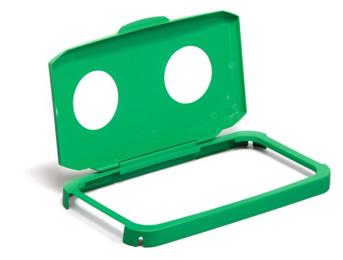 A key part of a colour-coded recycling system, this green lid helps users quickly identify the correct bin for bottles and cans, ensuring compliance with workplace waste separation guidelines and UK recycling legislation.