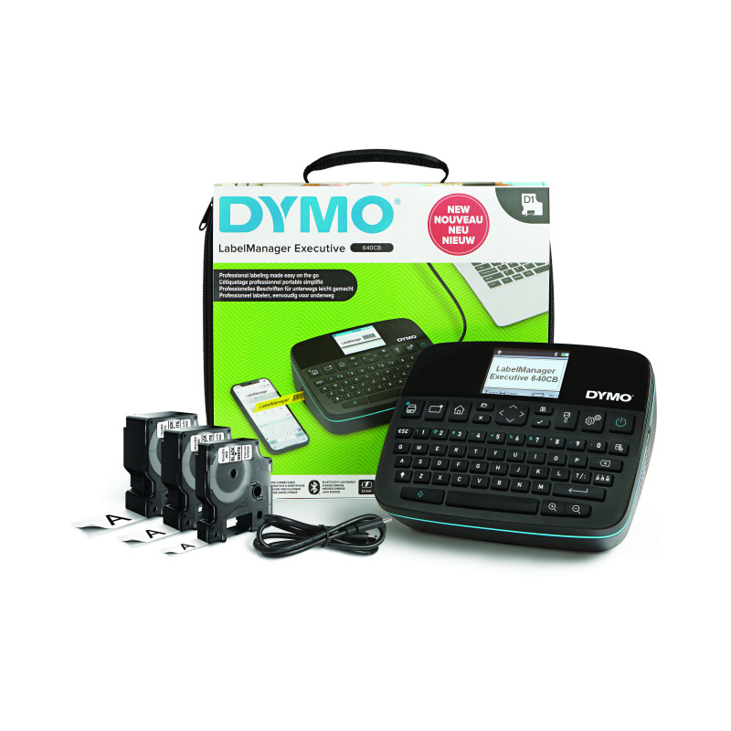 - Unit includes; LabelManager Eexecutive 640B, 1x D1 Label Cassette, 24mm x 7m - Black on White, USB-C Cable, Li-ion rechargeable battery