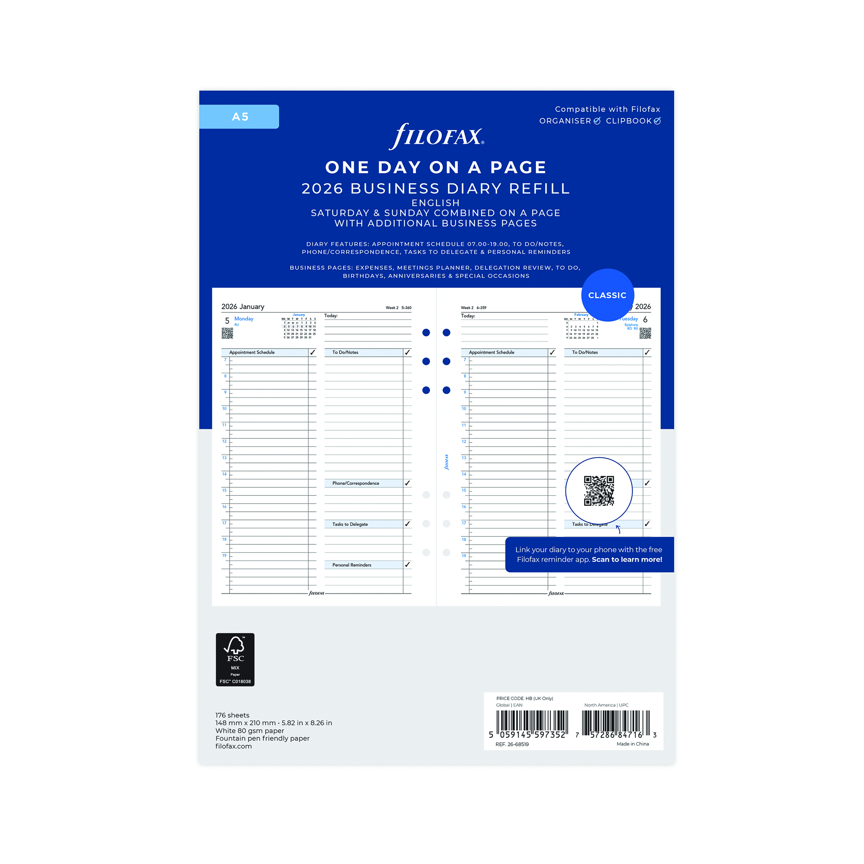 Filofax Refill Business Day Per Page Appointment A5 2026 26-68519
