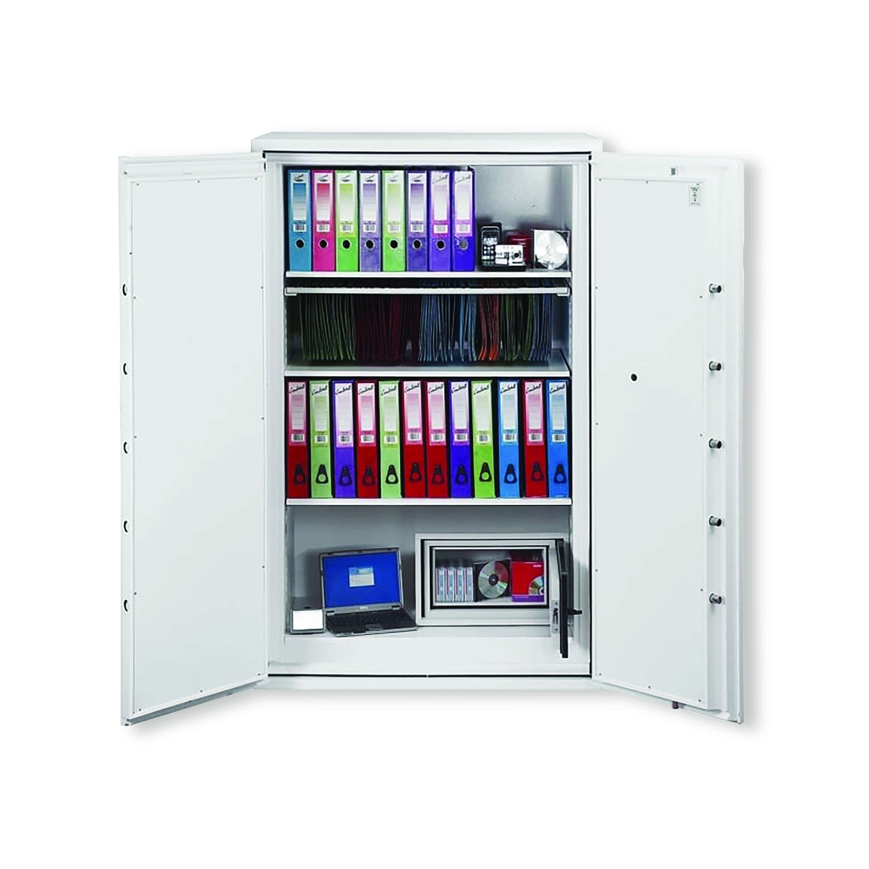 Protect your business's documents and media with this fire resistant safe. Fitted with a high security electronic lock with a clear LED display and the facility to programme hidden or scrambled codes, this safe has been independently tested to European standards.