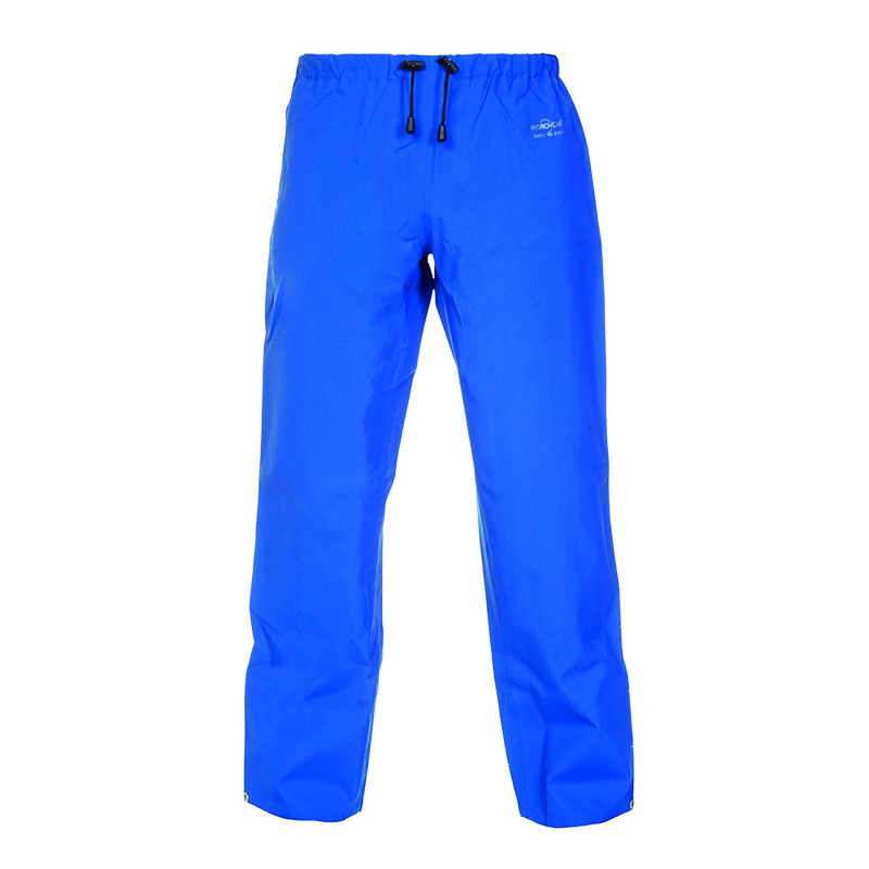 * Elasticated waist with draw cord* Adjustable leg opening with press studs * Mesh polyester lining* Simply no Sweat (SNS) 210gsm Polyester laminate fabric * Highly breathable providing great comfort * Durable and cost effective * Smooth polyester textile finish* Conforms to EN343 Class 3 Water penetration* Conforms to EN343 Class 3 Breathability