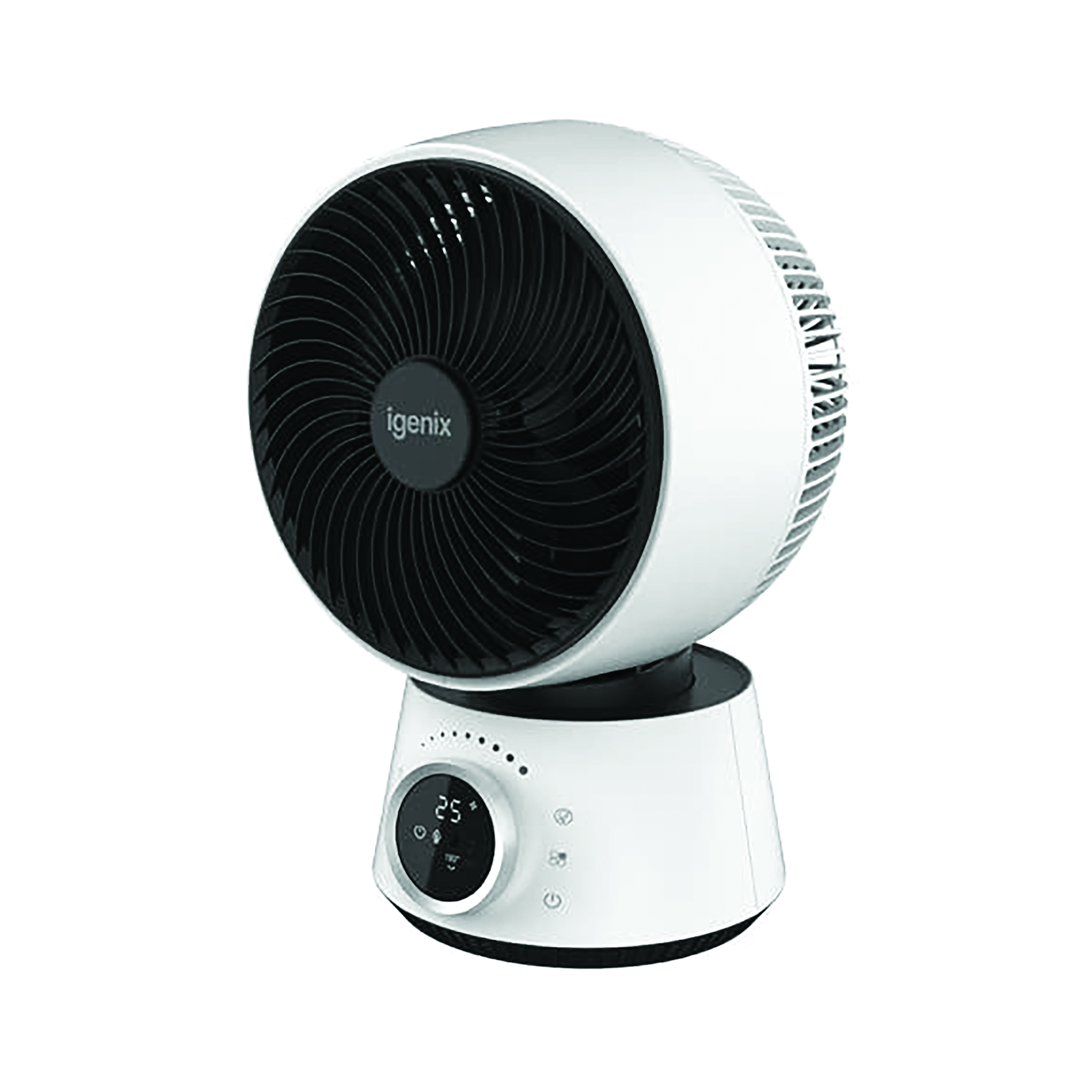 The Igenix 9 Inch Air Circulator Turbo Fan has multi-directional auto oscillation for optimal air circulation, 32 wind speed settings and 3 wind modes (normal, natural and sleep), the ideal addition to your home. The fan can boost the effect of your heating or air conditioning system, without needing to turn up the heating or cooling output. With its turbo technology and strong air circulation the fan disperses the cold or warm air evenly and provides more distribution of air in all corners of the room. While standard fans are designed to provide direct cooling, the IGFD4009W provides direct and powerful cooling to the entire room, and with a few drops of essential oil on the diffusing pad, the cool air can be scented too.