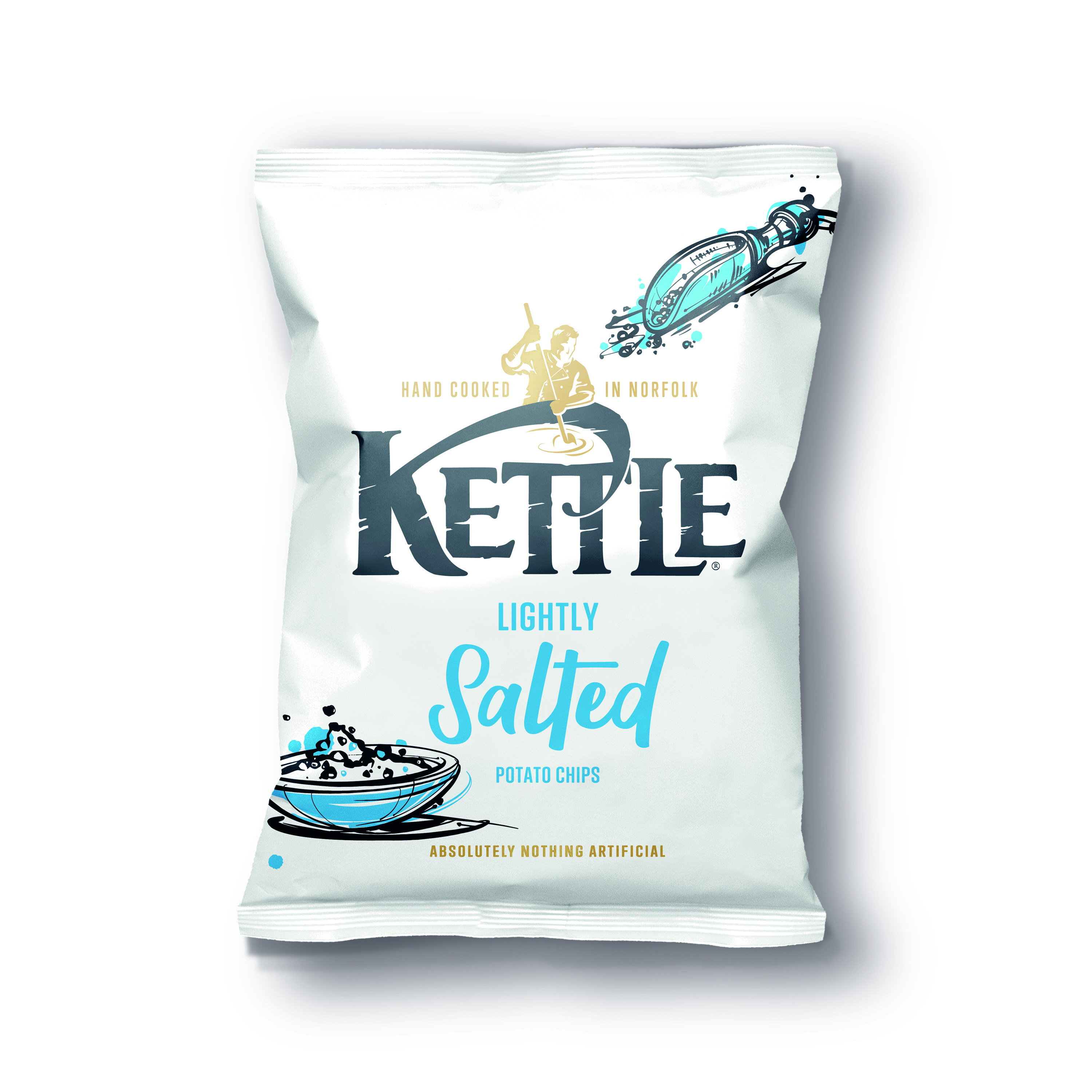Kettle crisps are hand cooked in Norfolk in the United Kingdom and do not contain artificial ingredients. Using real food ingredients, the hand cooked potato chips are gluten-free and suitable for Vegans. Seasoned with Lightly Salted seasoning, this pack contains 54 bags containing 40g.