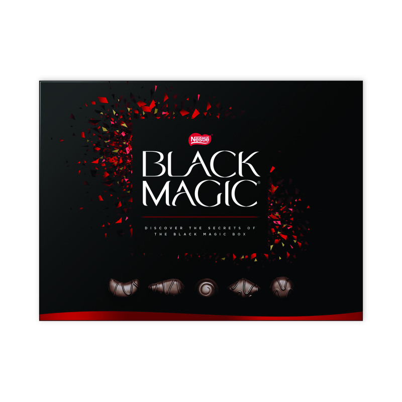 Black Magic Dark Chocolate box contains dark chocolates in a variety of caramels, wholenuts and fruit creams, 9 varieties to choose from in the box, all covered in dark chocolate: Coffee Crescent, Pure Black Magic, Midnight Truffle, Almond Crunch, Raspberry Heaven, Dreamy Fudge, Hazelnut Swirl, Orange Sensation, Caramel Heart. With minimum 40% cocoa solids. Free from artificial colours, flavours and preservatives. The perfect gift for dark chocolate lovers. Perfect gift for dark chocolate lovers.