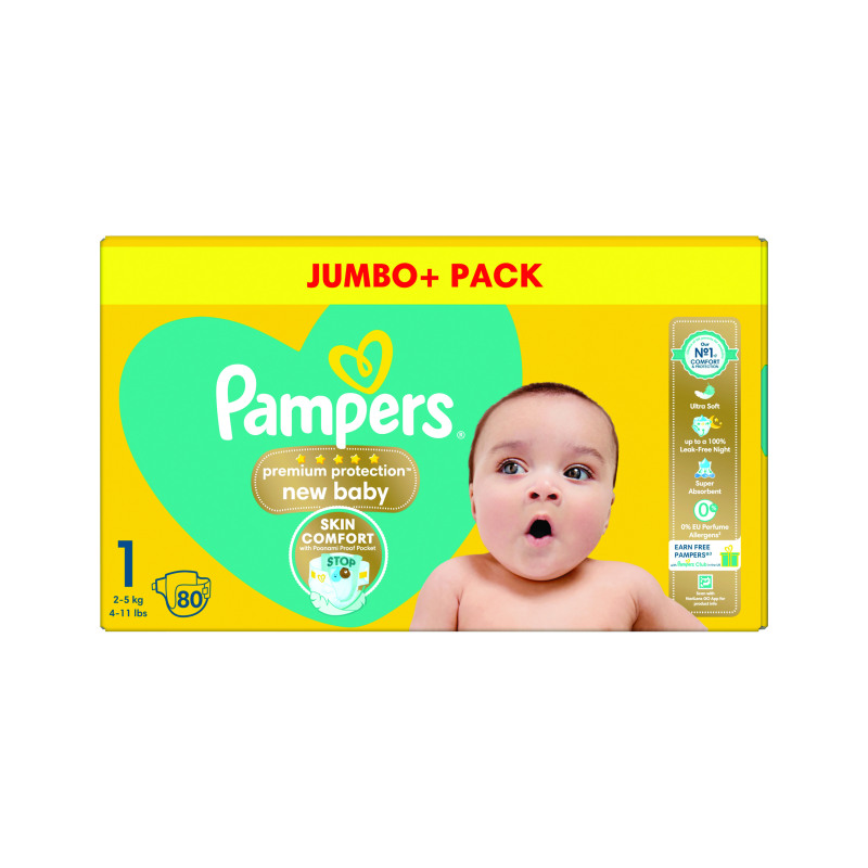 Pampers Premium Protection Nappies New Baby Size 1 Jumbo (Pack of 80) C003520