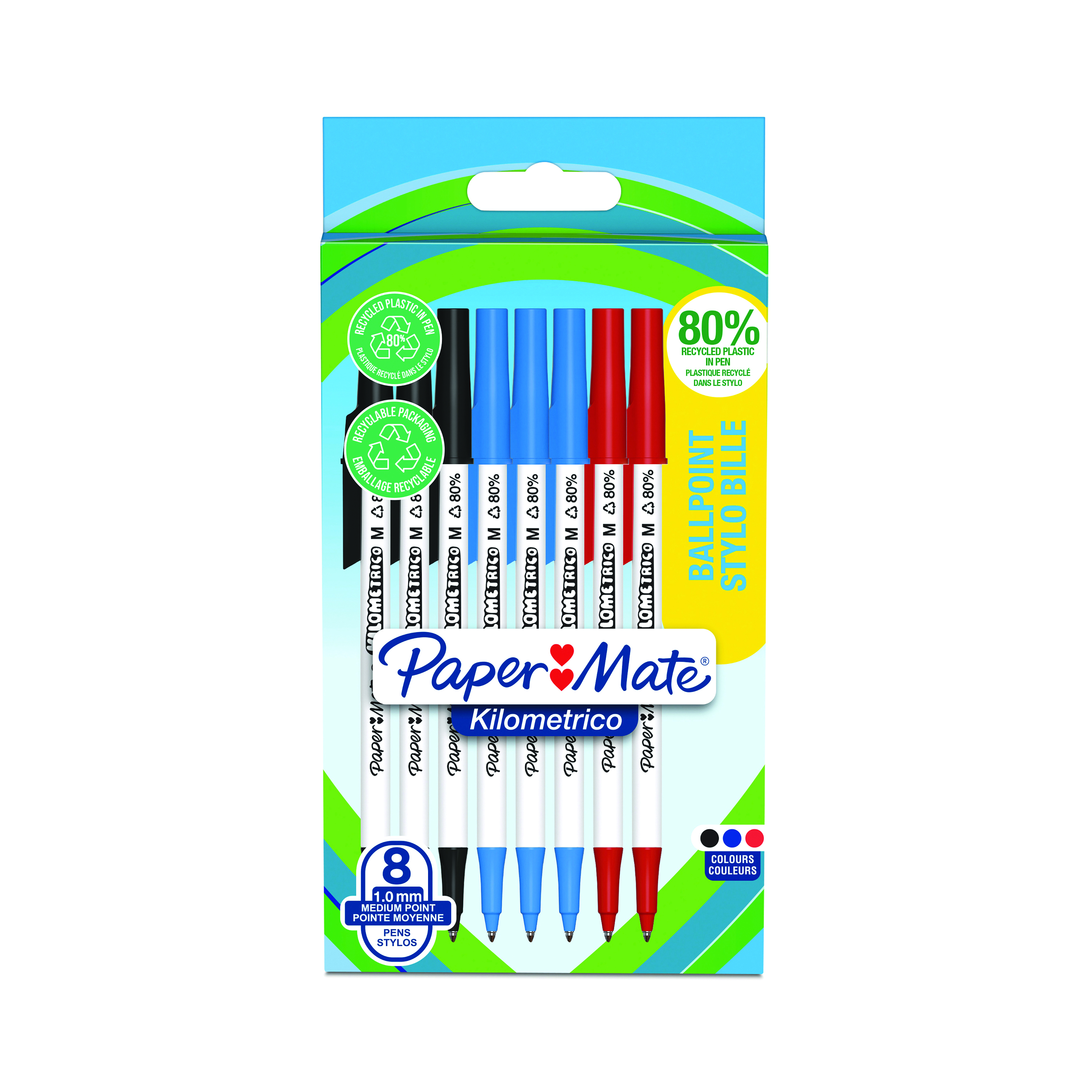 PaperMate Kilometrico Ballpoint Pen Medium 1.0mm Assorted (Pack of 8) 2187680