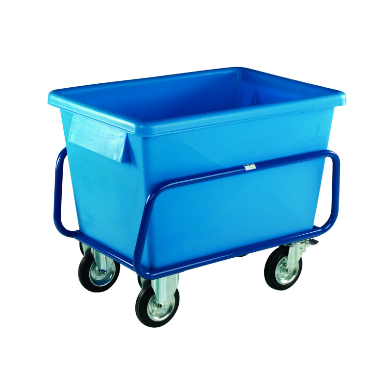 This bright blue heavy duty container truck can carry a load of up to 250kg in the large container, with two fixed and two swivel castors for precision mobility in tight spaces. The container body can be removed from the wheels - ideal for quick loading and unloading. The welded frame and strong polyethylene construction give it exceptional durability for daily use.