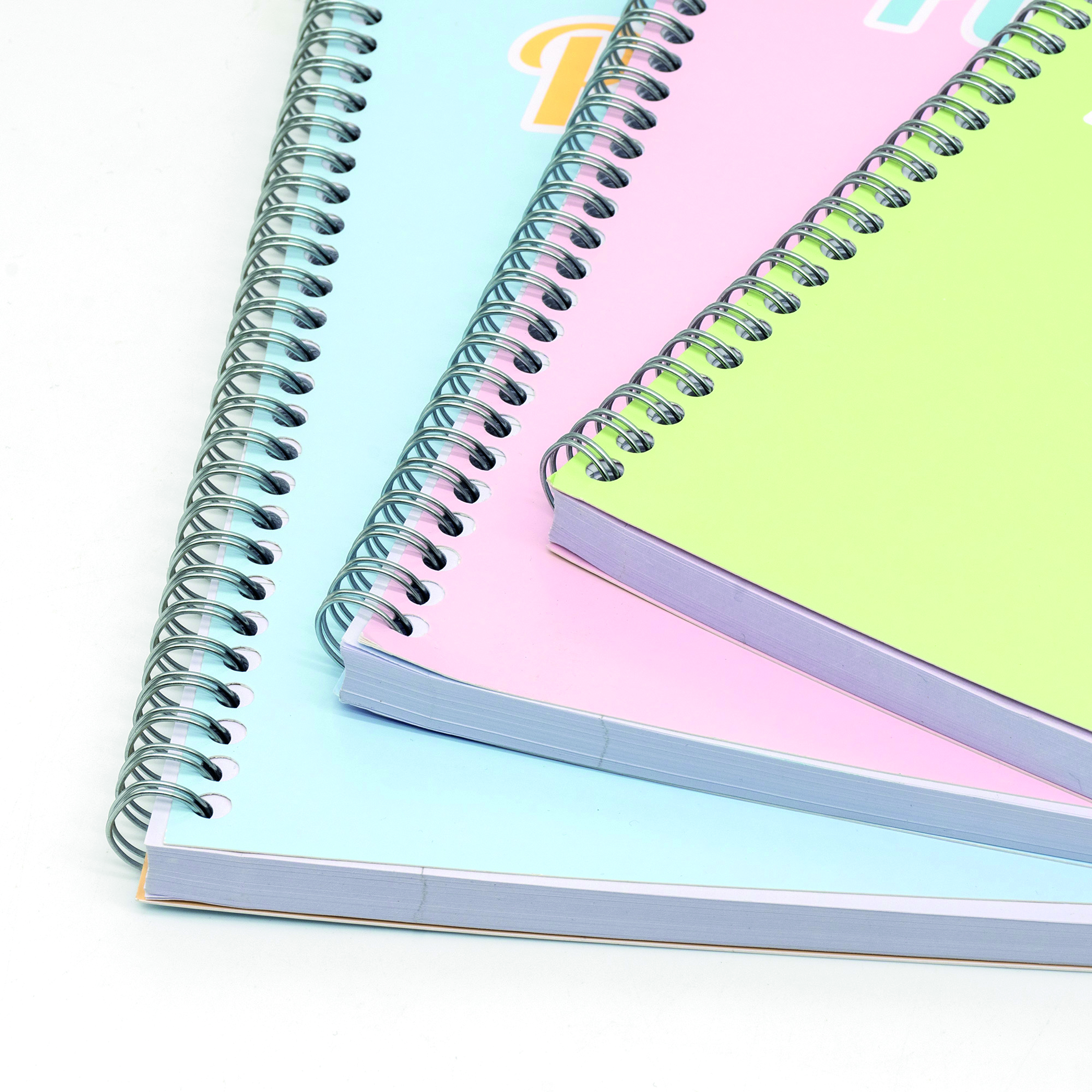 - Cover: 400gsm card in 3 assorted colours (Pink, Green and Blue)