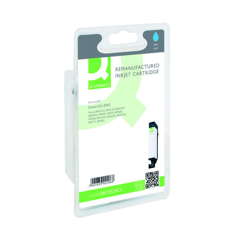 Q-Connect Remanufactured Inkjet Cartridge Cyan Compatible With Canon CLI-526C CLI-526C-COMP