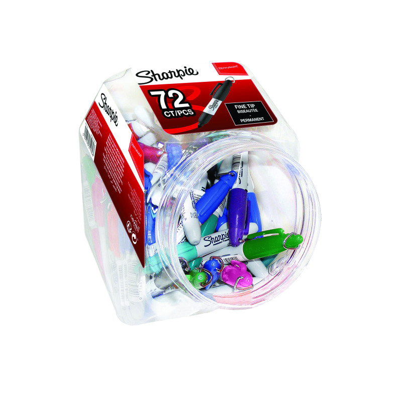 Sharpie Mini Permanent Markers with Key Ring Pocket-Sized Fine Point Assorted (Pack of 72) S0811300