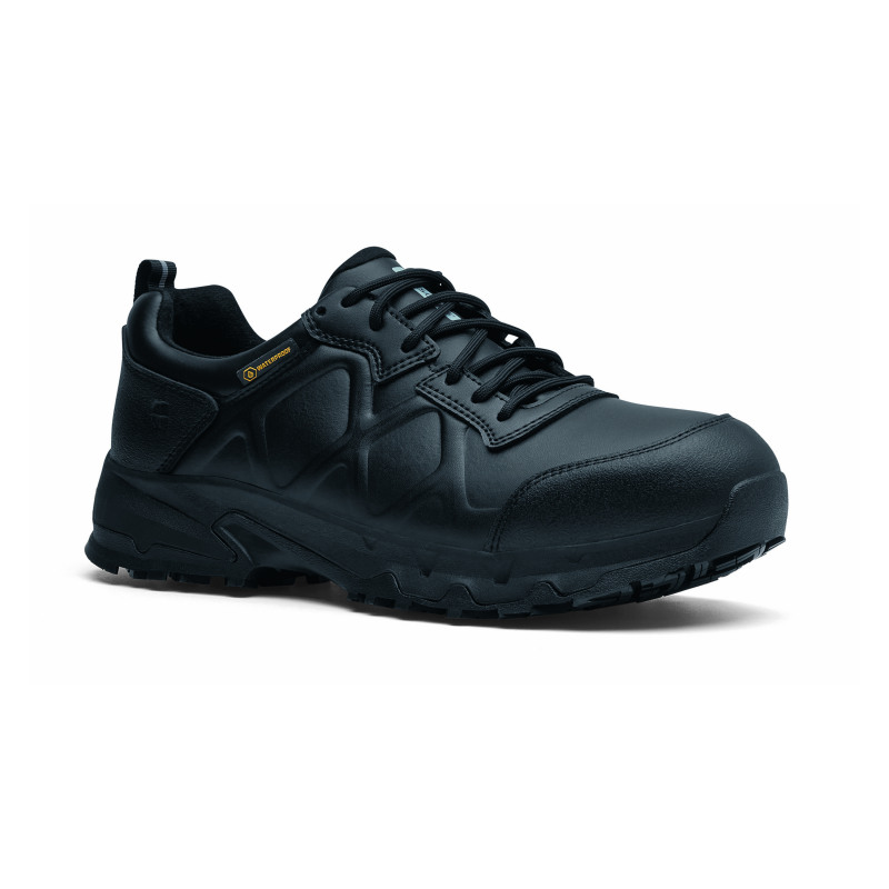 Shoes For Crews Callan Unisex ESD Low Safety Shoe are metal free and waterproof. With a superior slip resistant outsole and removable cushioned insole and cushioned EVA midsole. Featuring TripGuard, a highly clog resistant outsole and leather upper. Resistant to blood borne pathogens ISO 16604. The shoes are easy to clean.