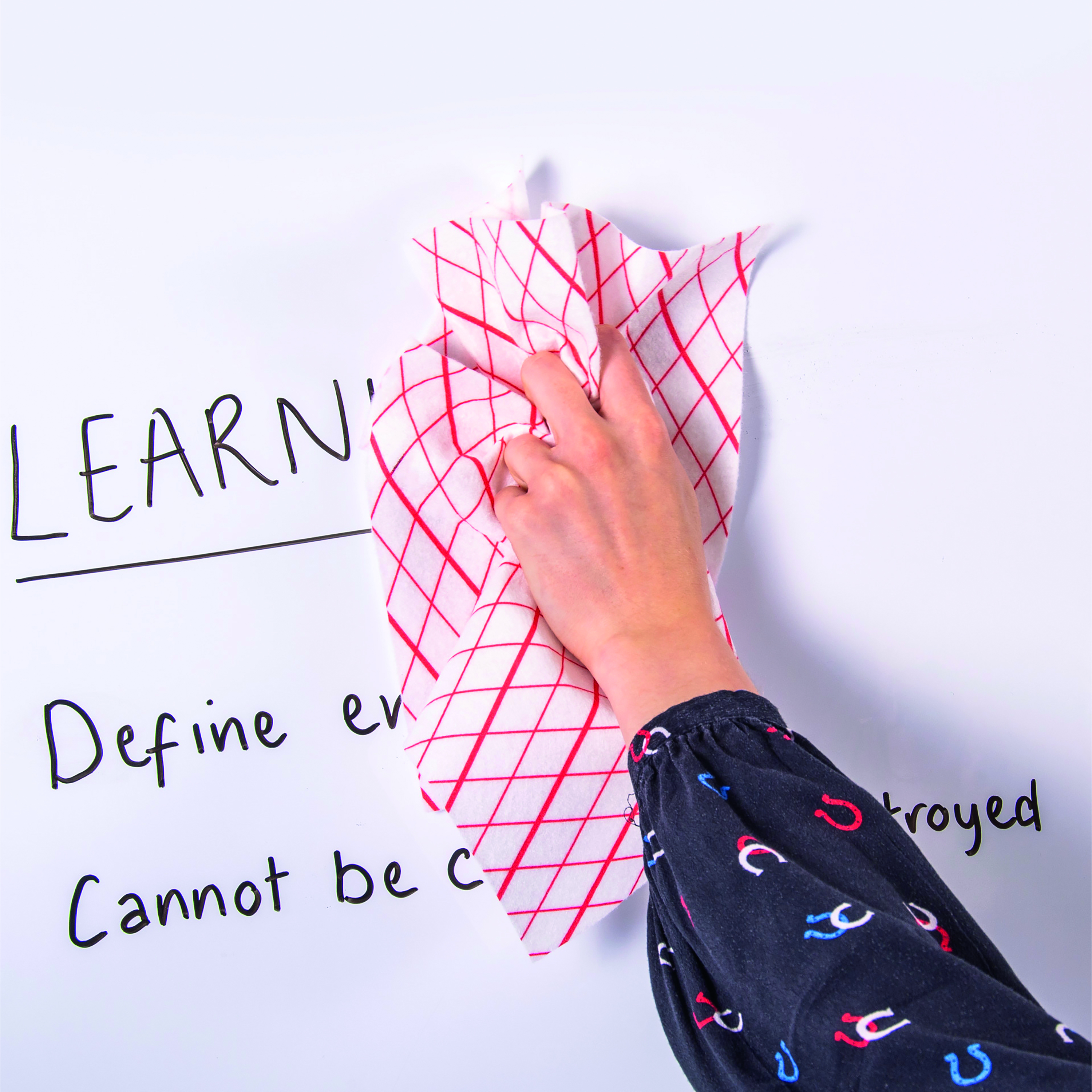 These Show-me plant-based whiteboard cleaning cloths are plastic-free. Designed to clean drywipe boards, they easily remove drywipe ink from all drywipe boards whatever the size. A safe option for use in the classroom, these cloths are an excellent eco-friendly alternative to the traditional board eraser. Supplied in a pack of 40 in assorted colours (colours may vary).