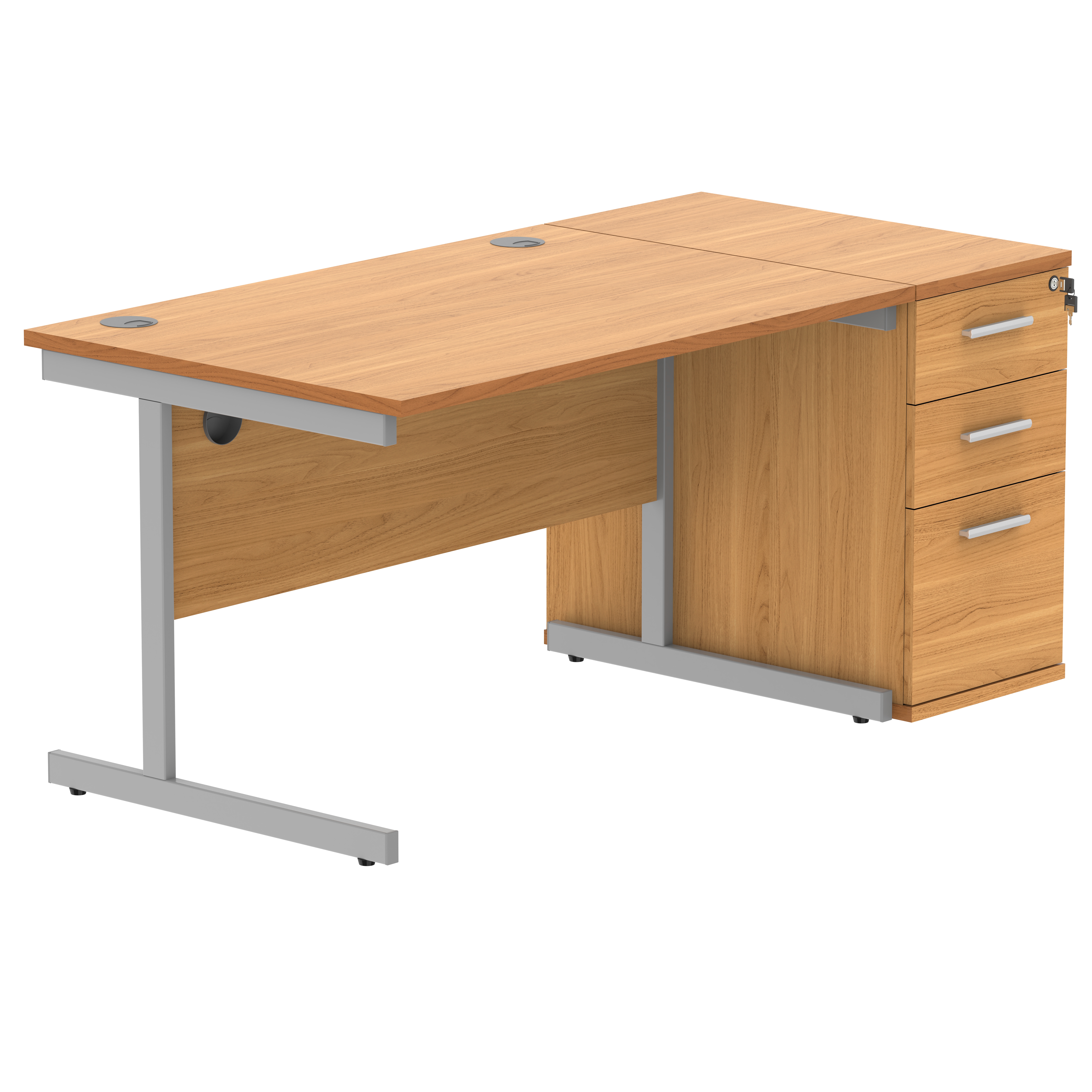 Single Upright Rectangular Desk + Desk High Pedestal (FSC) 1200 X 800 Norwegian Beech/Silver