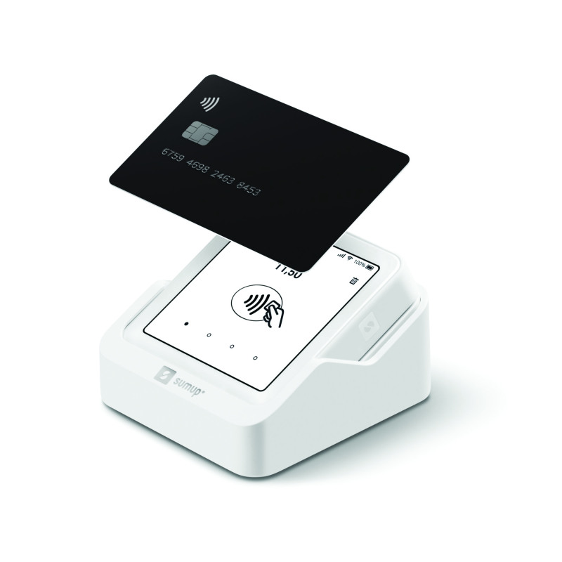 Compact, intuitive and connected, the SumUp Solo is an advanced all-in-one card reader with a smart user interface and intuitive touch-screen. Payments are a seamless experience with this pocket sized payment device. Truly portable and well connected via WiFi or by the free mobile data included with the in-built SIM. Payments can be processed anywhere at anytime. The SumUp Solo will constantly evolve via automatic software updates, keeping up with most up to date features. Standard 1.69% transaction fee required without the need for contract or monthly cost obligations, this device accepts all kinds of payments such as Chip&Pin, contactless, Android and Apple pay. Supplied complete with a charging cradle.