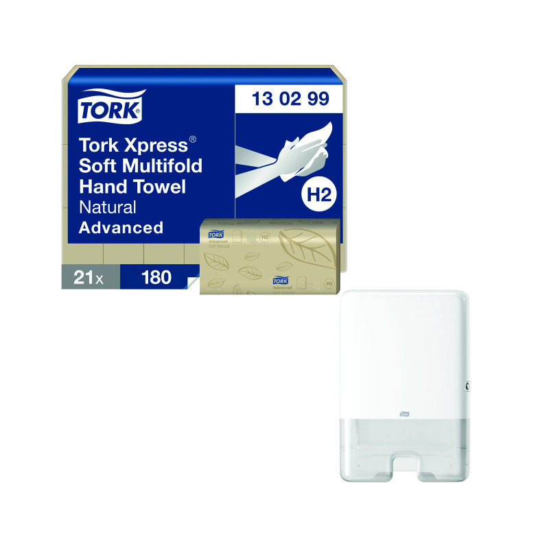 - Promotion includes: Pack of 21 sleeves of Tork Advanced Xpress soft multifold hand towels and a free Tork Xpress Multifold Hand Towel Dispenser