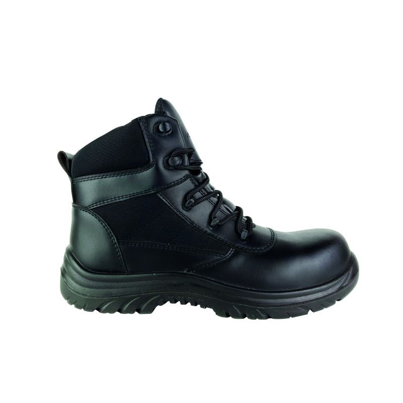 The Tuffking Vega is a lightweight, metal free uniform safety boot, with amazing comfort. The durability and safety required for the job without any cruelty to animals. This vegan safety 6 inch hiker uses a durable leather alternative upper. The eco-friendly recycled Tuff-Dry Waterproof Membrane will keep feet dry while absorbing sweat and moisture. The boot has a dual density Polyurethane outsole, fibreglass toe cap, puncture resistant composite modsole, front scuff guard, ankle supoort and impact absorbing heel.