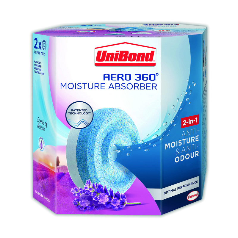 The UniBond Aero 360 Moisture Absorber needs refill tabs to absorb moisture and neutralise odours in the air. You can bring a floral smelling scent to your home and office with these lavender refills, fill the room with a relaxing scent. This pack contains 2 lavender garden refills.