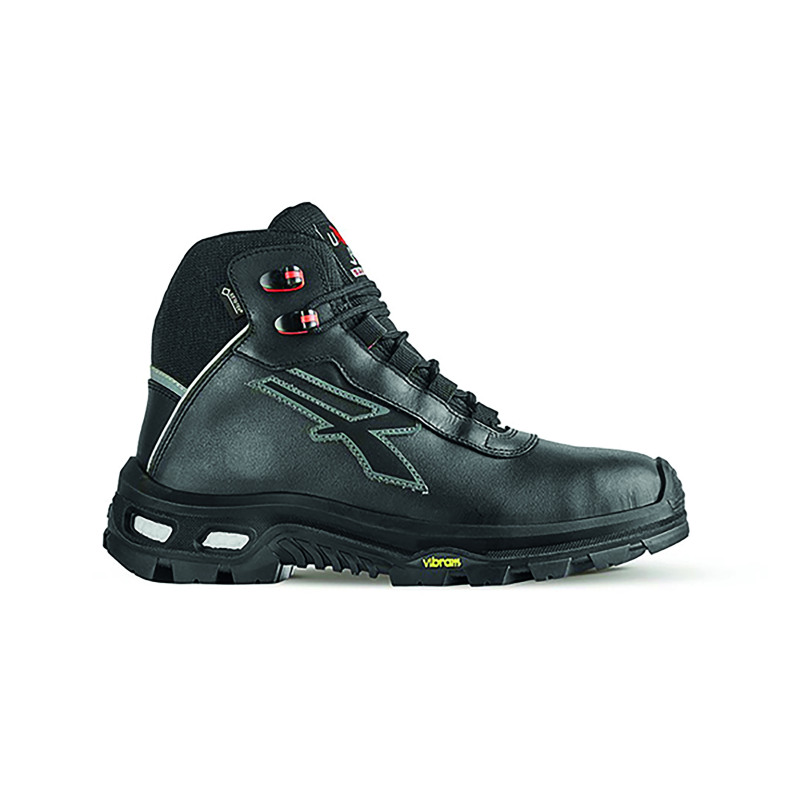High and comfortable safety shoe, U-Power of the Red Over range, with upper in soft grain leather, water-repellent, aluminium-toe, Gore-Tex lining and sole with 300 ° contact resistance (1min), anti-oil, anti-slip and antistatic. Complies to EN ISO 20345 - S3 WR HRO HI SRC CI