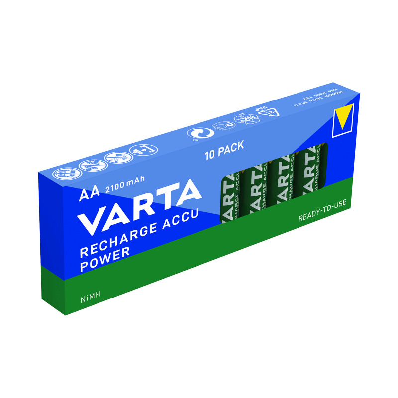 VARTA Recharge Accu Power rechargeable batteries provide the widest NiMH assortment on the market and thus the best energy solution for any device of everyday usages. From low drain devices with basic energy needs up to high drain devices with highest energy requirements. All sizes and capacities of the VARTA Power accus are Ready To Use and offer very low self-discharge to meet highest consumer demands.