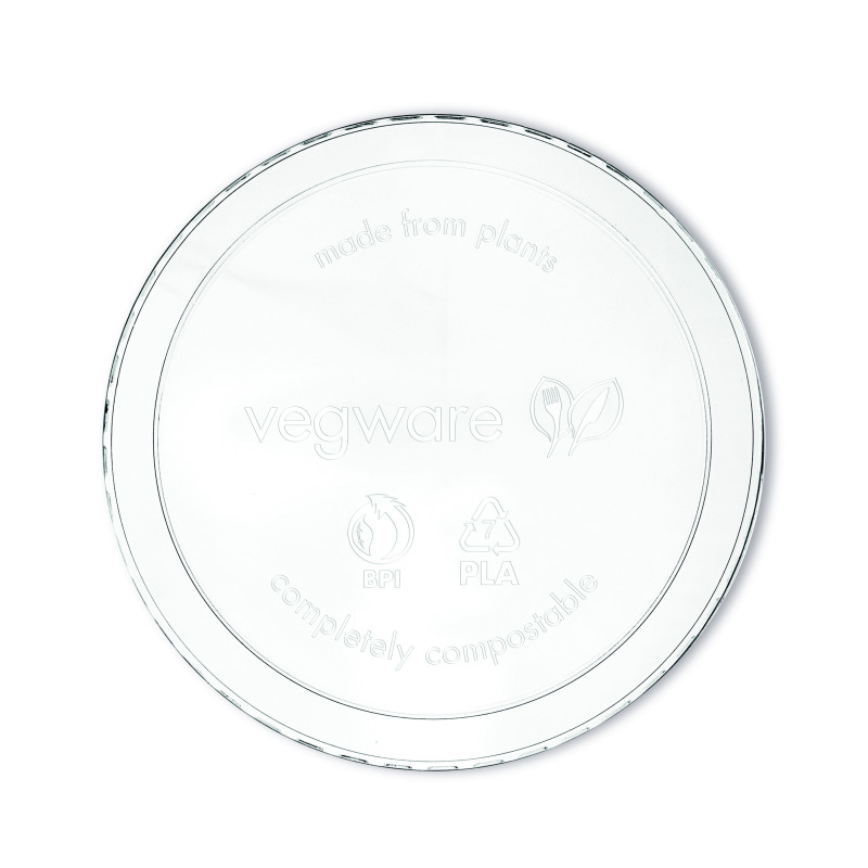 Round lid to fit Vegware 8-32oz deli containers. Stacks easily. Great seal so you don´t spill your salad or deli treats. Made from PLA a renewable material made from plants. Clear for visibility. Award-winning quality by Vegware made from plants. Commercially compostable where accepted.