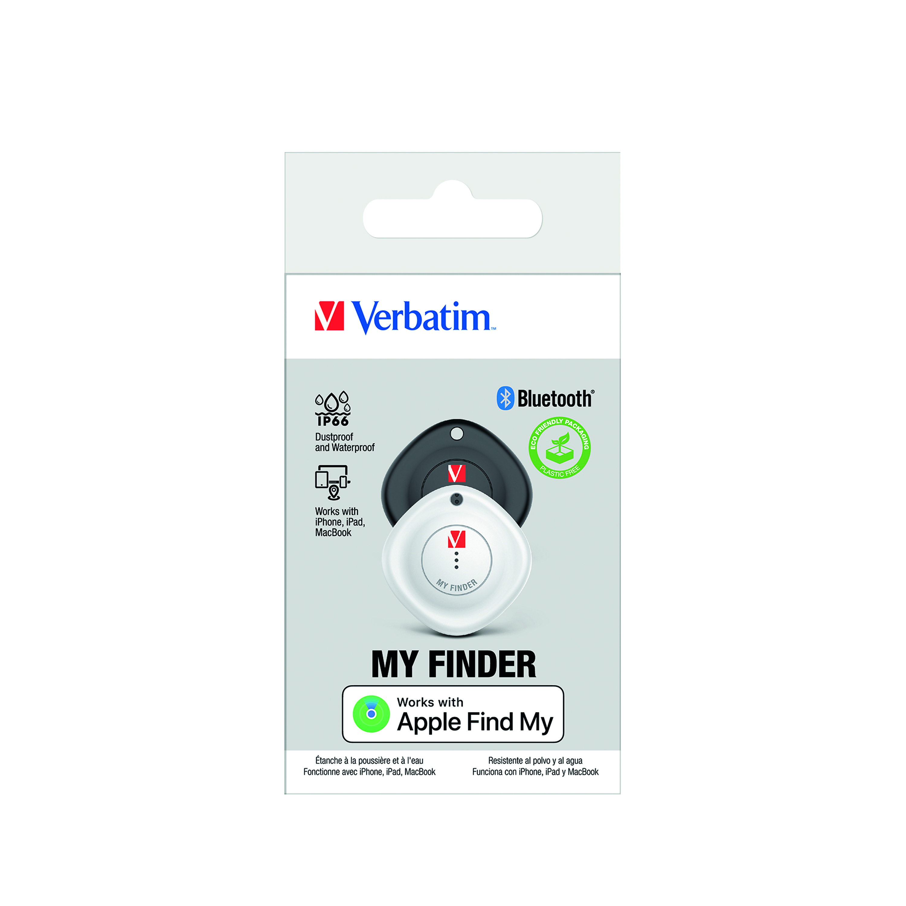 Verbatim's My Finder is a tracking device that works exclusively with Apple's Find My App. Simply attach the My Finder to any item that you need to keep track of and you can locate the item through the Find My App on your iPhone, iPad and MacBook. Misplaced keys, bags and other valuables are a thing of the past with Verbatim's My Finder Bluetooth tracker. Simply attach the versatile tag to the item you want to track and use Apple Find My app to locate it when missing. Within the app's Lost Mode, you can enter your contact details in the event that your missing item is located by someone else in the Apple Find My network. Supplied in a pack of 2 (one in black and one in white).
